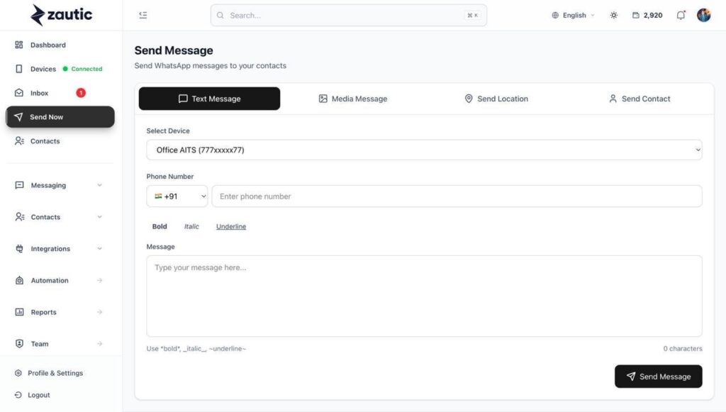 Most WhatsApp tools focus on sending messages. Zautic focuses on building systems.